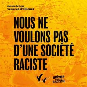 Nous ne voulons pas d’une société raciste. Ensemble, construisons la société dans laquelle nous voulons vivre, une société de solidarité, de justice, et de respect des libertés.